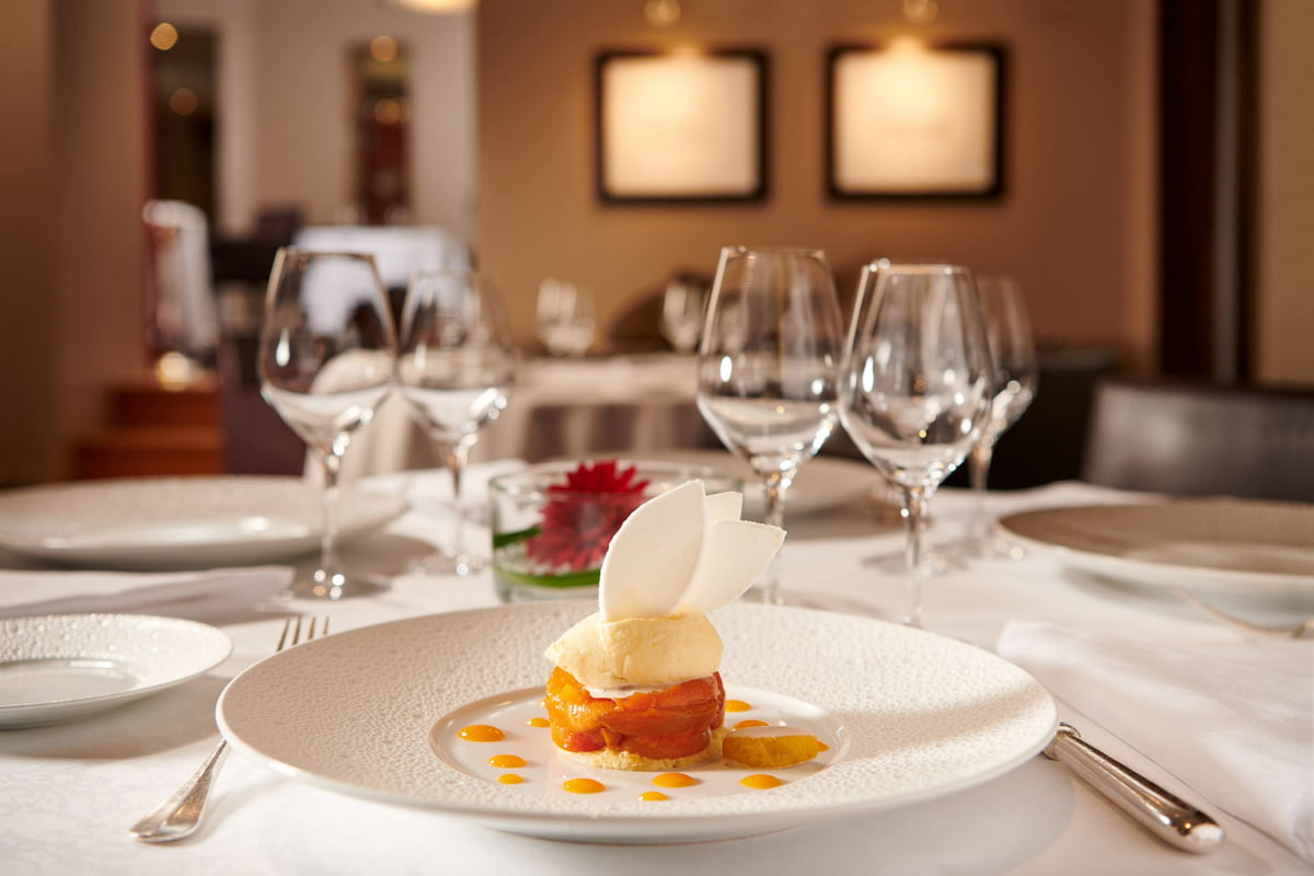 Traditional gourmet cuisine in a sleek, designer setting with marble floors and modern paintings. For Guy Lassausaie, “the style reflects a part of our intimacy”. Revealing the man he is, his cuisine is in his image. Deep, generous, demanding and perfectly identifiable. He seduces above all by his incredible precision in the choice of products first of all, which he takes care never to distort, but also in the taste and visual combinations with a graphic design of his dishes where everything is rigorously hierarchized.